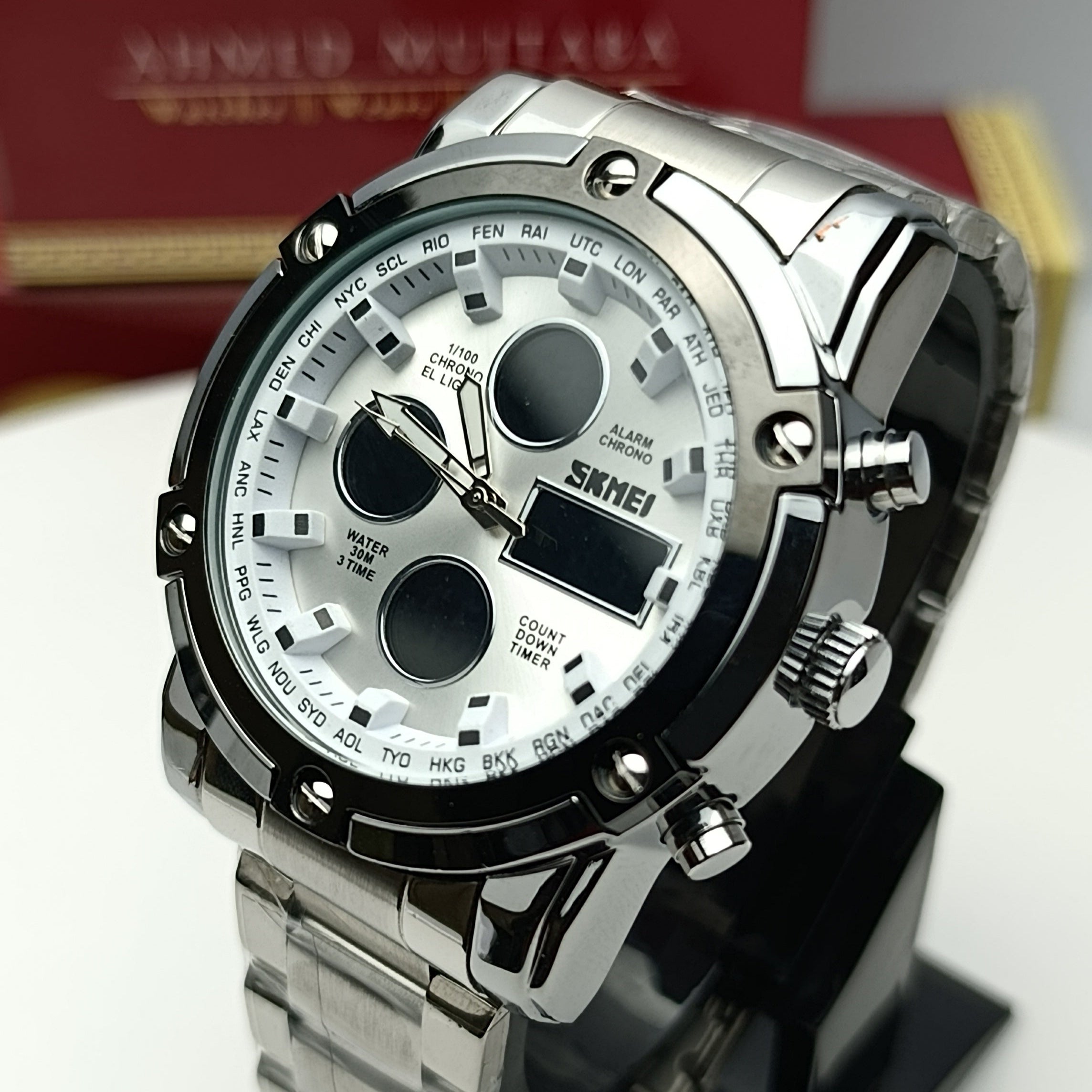 SKMEI Original Full Metal | Dual Time | Heavy Men’s Look | 6 Month Wrranty (White)